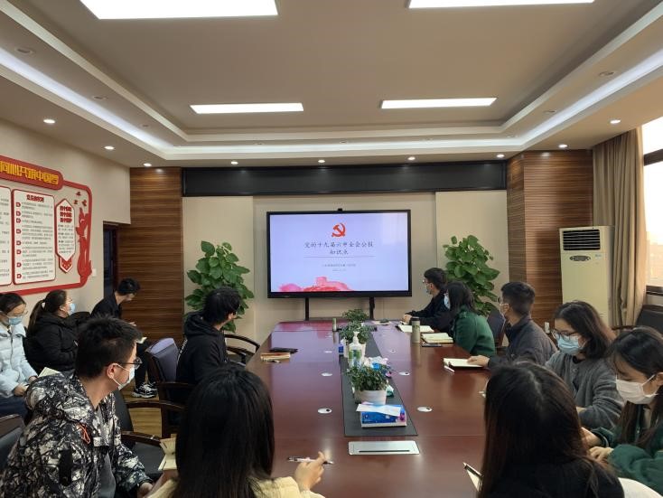 本科第一党支部学习教育会在J01212会议室召开,本次会议主要内容是学习党的十九届六中全会公报,由党支部书记陈泽东同志主持召开,院党委副书记余小英同志莅临指导。本次会议共分为四项议程,分别是基本知识、全会内容、新论断新表述、心得体会。