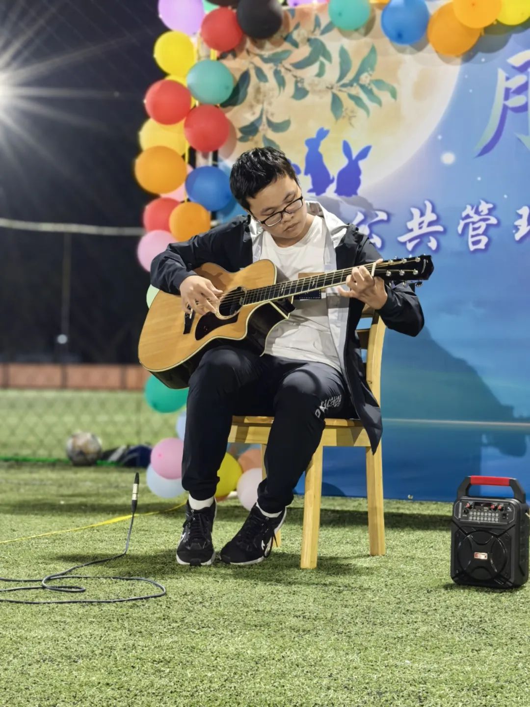 傍晚时分,草坪上灯火通明,师生们围坐在一起,欣赏着由学院新生带来的精彩表演。音乐会上,同学们多才多艺,表演了多类型、多风格、多民族、多国籍的精彩节目,将传统与现代完美融合。经典传唱与时尚演奏轮番上阵,赢得了现场观众的阵阵掌声和欢呼。笑声与欢呼声此起彼伏,浓浓的中秋团圆氛围洋溢在整个校园。