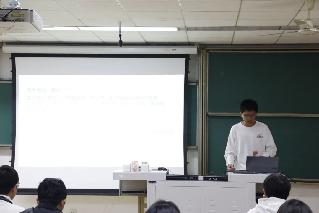 洪心瑜同学以笔记记录、日常习题和备考策略为引,讲述学习高数的心路历程与方法,让大家获益良多。随后,吉皓祥同学通过问卷了解同学们的高数难题并进行了针对性的解答。他从学习思路、上课节奏、课前预习、课后复习等角度阐述,结合自身经验总结出“主动”“反思”“交流”“坚持”的数学学习通用方法。