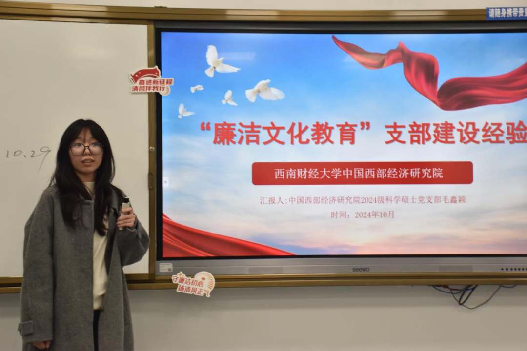 在“花语廉心”廉洁文化教育基地的参观结束后,活动转至西南财经大学经世楼B108室内进行。三所学校的学生代表围绕廉洁文化主题进行了各具特色的PPT展示,从不同的角度分享了各自学校在廉洁教育方面的实践与成果。蜜桃视频