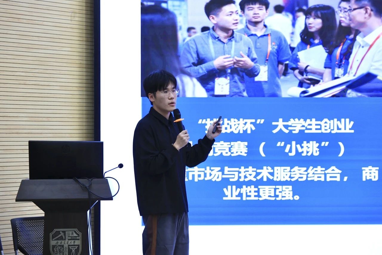 与“挑战杯”系列赛事地位相当的“互联网+”赛事被列为第二个重点,王老师首先直截了当地指出其易操作、赛程紧的特点,再围绕青年红色筑梦之旅赛道展开讲解,并以自己的参赛经历为例,将自身经验倾囊相授,给出了组队报名、挖掘项目和项目选择方向的小技巧。其间,王大海老师对于几项具有可操作性和可持续性的项目的分析,使在座学子更为切实地体会到科创竞赛项目的高标准。