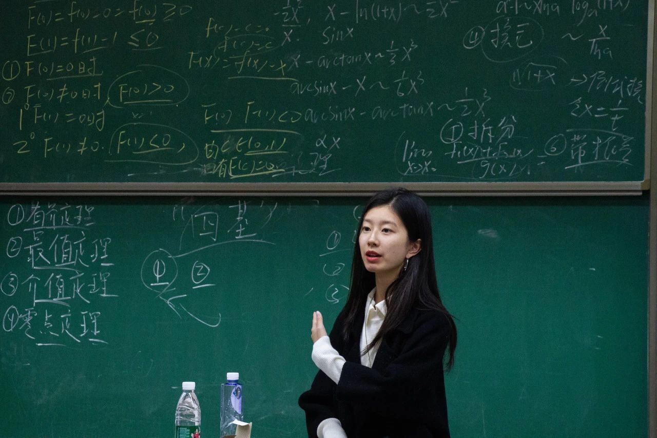 紧接着,蒋瑞雪同学以定义为引,例题为主,为同学们一一解答疑惑。精心的准备,细致的讲解,工整的板书让函数的连续性、可导性等复杂知识点变得清晰,繁琐的证明步骤也逐渐明晰易懂。