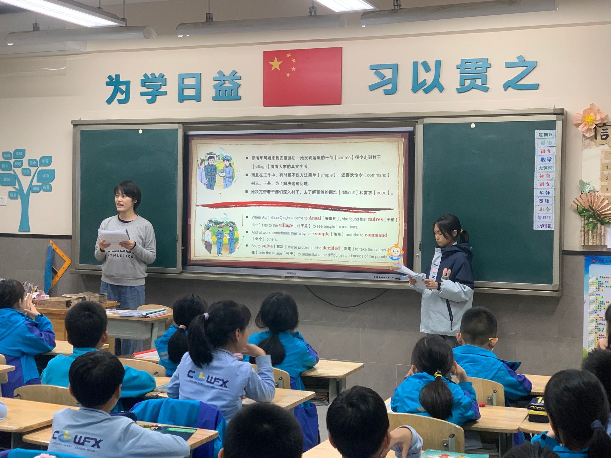 首先,宣讲团成员郑不凡、刘文婷通过用双语讲解红色精神小故事《陕甘宁第一位女县长——邵清华》,为青少年学子介绍了延安精神的内涵与意义。成员们通过设计精美的课件,制作双语插画绘本,呈现了女县长邵清华的英雄事迹,讲述了延安精神是如何在她身上得到了体现。邵清华来到延安后,不仅努力学习知识,更将这些知识应用到了她的工作中,体现了“实事求是、理论联系实际”的精神;她始终把人民的利益放在首位,关心妇女的生活和权益,践行着“全心全意为人民服务”;在延安,克服了种种困难来解决群众的问题,让大家共同为革命奋斗,体现了“自力更生、艰苦奋斗”的精神。成员们结合生动的事例,鼓励小朋友们从邵清华阿姨的事迹中汲取力量,成为有理想、有担当、有作为的新一代青年。