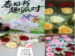 在“文摘换花”环节,同学们在明信片上创作与春天、红色文化或经典书籍相关的短诗,或是摘抄书中经典内容,用饱含心意的作品换取玫瑰花。这一活动将阅读与艺术创作相结合,在书写的过程中深入品味经典的韵味,展现自身的文学底蕴。每一张明信片都成为了知识与情感的载体,为班级留下了珍贵的手账记忆。