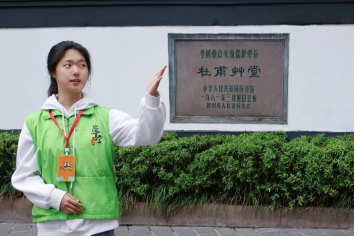 在老师们和同学们的精彩分享后,法学2024-01班学生代表组织前往杜甫草堂开展研学活动。刘玉烨担任此次实践研学的讲解员,带领同学们在历史遗迹与相关故事当中,“阅”览千年诗脉,感悟历史风华。
