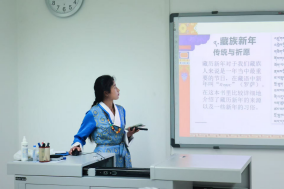 在“三人行,必有我师”环节,三位同学结合家乡特色展开分享。赵琦颜以《哦,香雪》为引,生动展现了河北省在改革开放后的巨大转型;吴杨婷借《画山绣水》,描绘广西桂林的秀丽山水,带大家领略了大自然的鬼斧神工;身着民族服饰的达娃布赤,通过《藏族风俗习惯》介绍西藏风土人情,带领同学们感受不同地域的独特魅力。