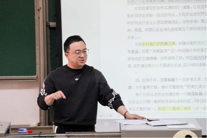 “新闻观是新闻舆论工作的灵魂。”雍腾老师从习近平总书记的话语入手,首先抛出问题“文章写作是否要就事论事?”,引发学生思考。接着雍老师就这一问题阐述新闻写作的意义,并组织在场师生面对面建群,通过对比写作实例讲解新闻写作的注意事项,在实践中让大家获得更为深刻的理解。