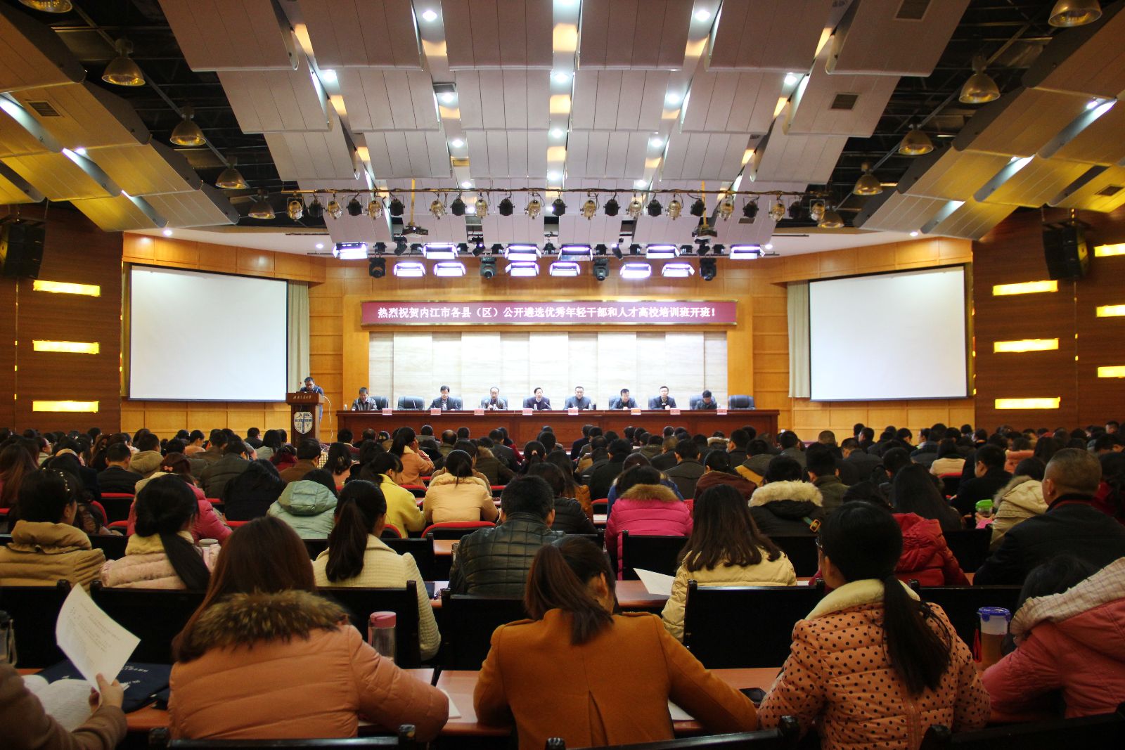 院长陈光,副院长雷叙川,中共内江市东兴区委常委、组织部部长封武,中共内江市资中县委常委、组织部部长黄焕燃,中共内江市隆昌县委常委、组织部部长刘学兵,中共内江市威远县委常委、组织部部长李杜,中共内江市委派驻市中区委副县级组织员、市中区委组织部常务副部长、人才办主任段鹏飞及来自内江市各区县各级党政机关的410余名参训学员共同出席了开班典礼。