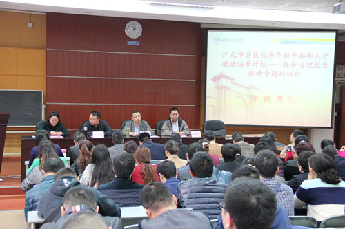 此次培训为广元市县区优秀年轻干部和人才递进培养计划,以社会治理为培训主题。涵盖依法行政、社保民生、公共安全、能力提升等专题板块,为期20天,有来自我校、四川大学、电子科技大学、省维稳办、省信访局、省防邪办、省委党校等30余位专家教授前来授课。