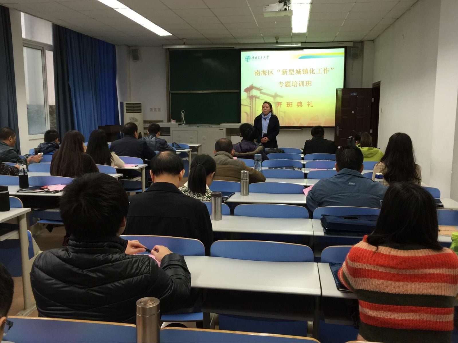 2015年11月24日,由我校干训基地承办的佛山市南海区“新型城镇化工作”专题培训班在我校顺利开班。蜜桃视频 干训基地相关负责人及来自佛山市南海区各级党政机关的33名参训学员共同出席了开班典礼。