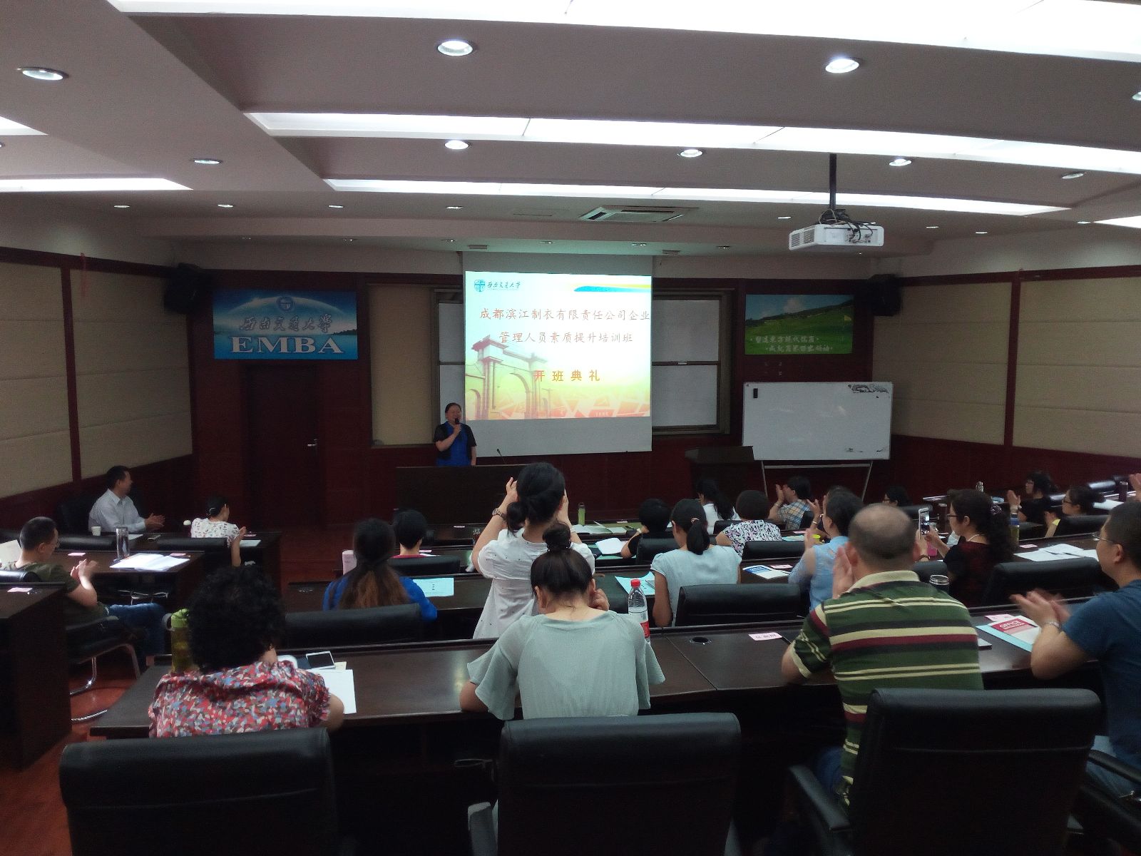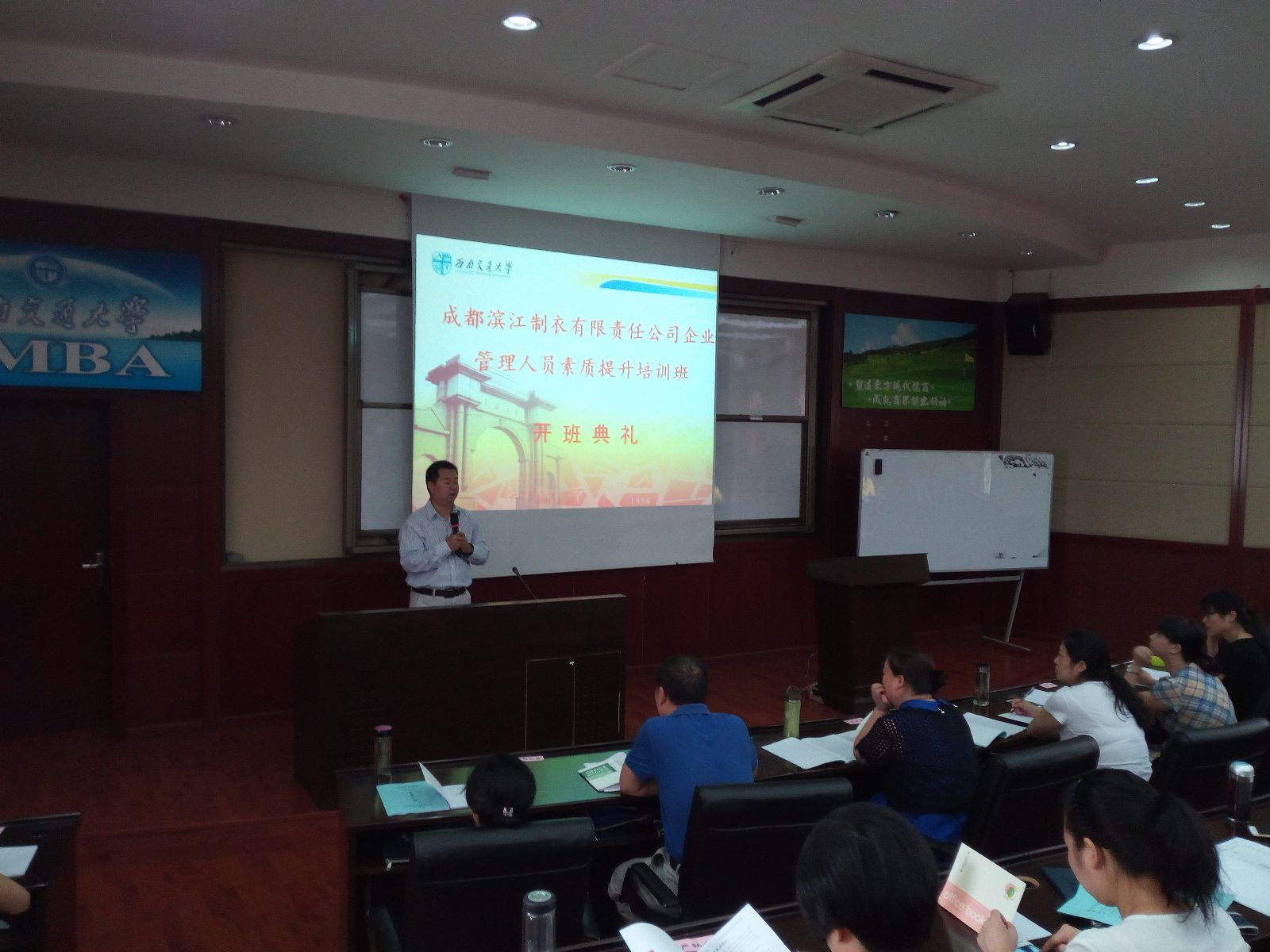 2016年6月13日,由我校干训基地承办的成都滨江制衣有限责任公司企业管理人员素质提升专题培训班(第一期)在我校顺利开班。蜜桃视频 公共管理与政法学院副院长雷叙川、成都女子监狱副监狱长宁晓英及来自成都滨江制衣有限责任公司的60名参训学员共同出席了开班典礼。
