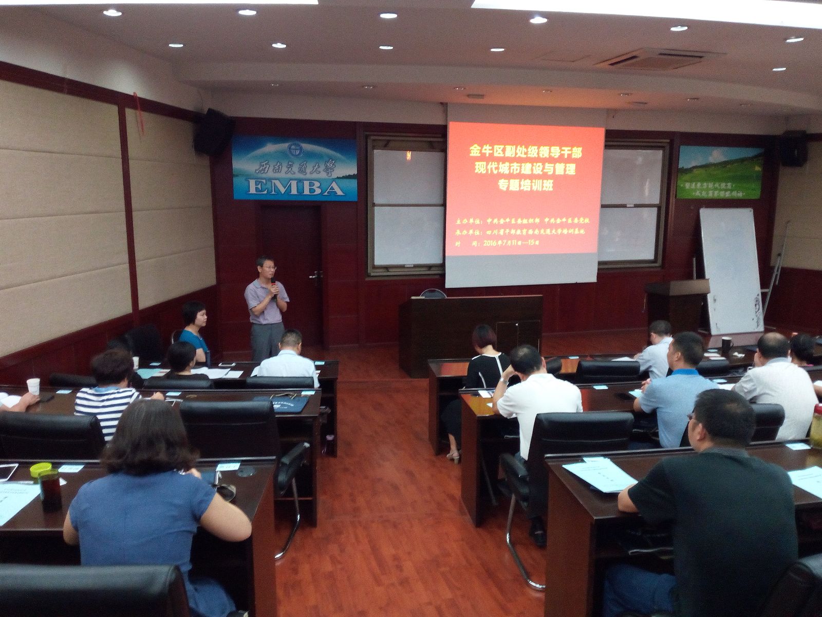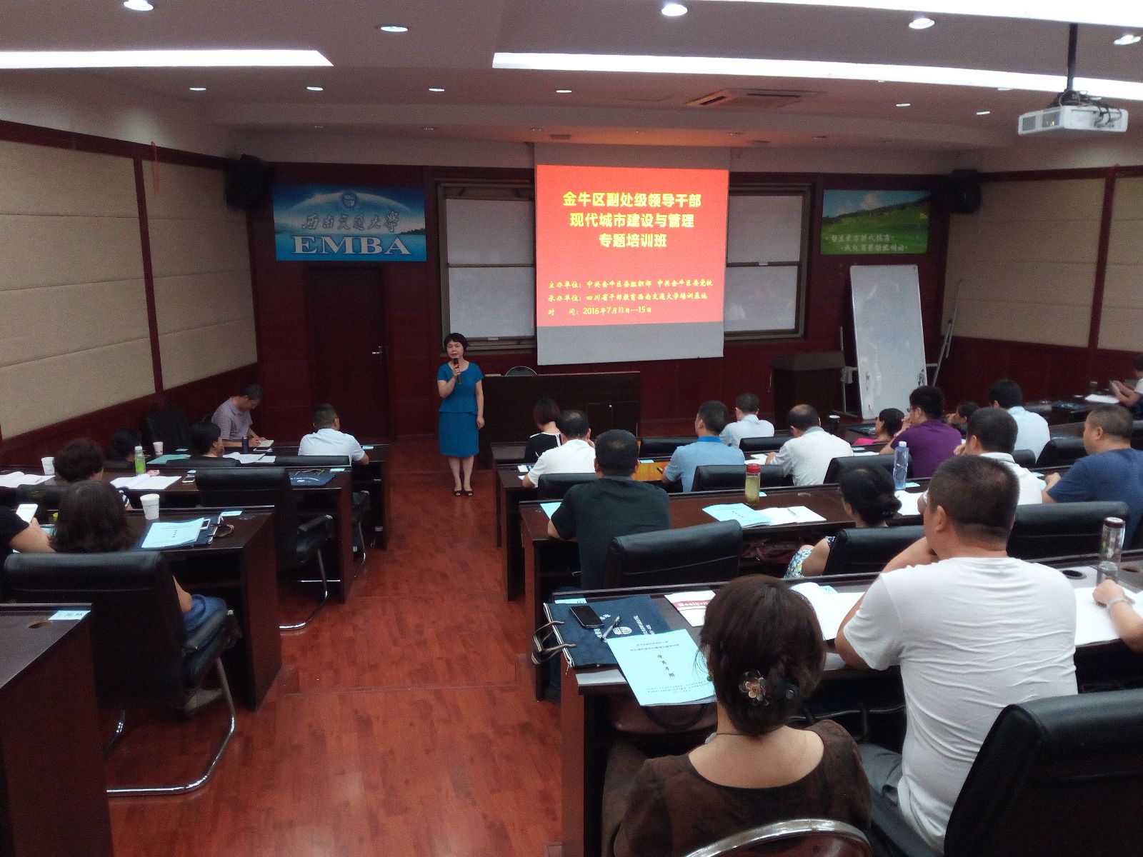 此次培训以“现代城市建设与管理”为主题。涵盖宏观政治经济形势分析、公共治理、供给侧改革、智慧城市建设、城市工作等专题,为期5天,有来自四川省委党校、省维稳办、成都市委党校、电子科技大学及我校的10位专家教授前来授课。