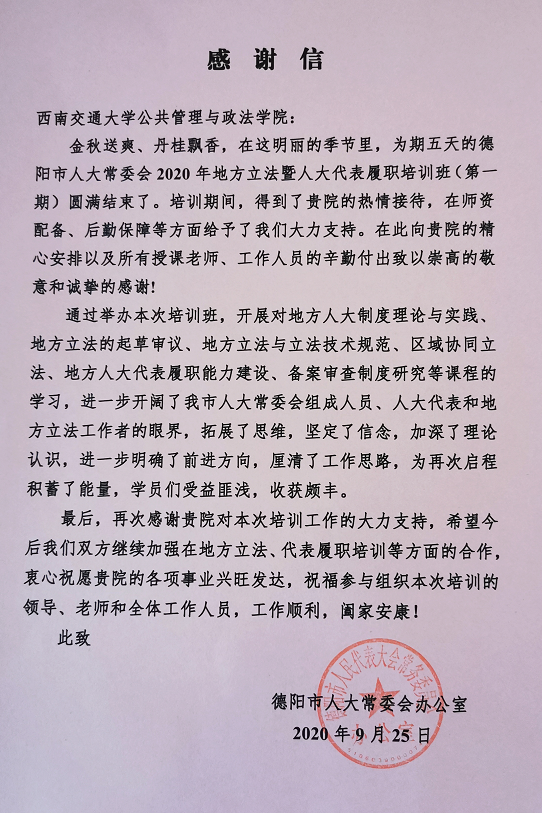 本次培训得到了德阳市人大常委会的高度重视,并对蜜桃视频