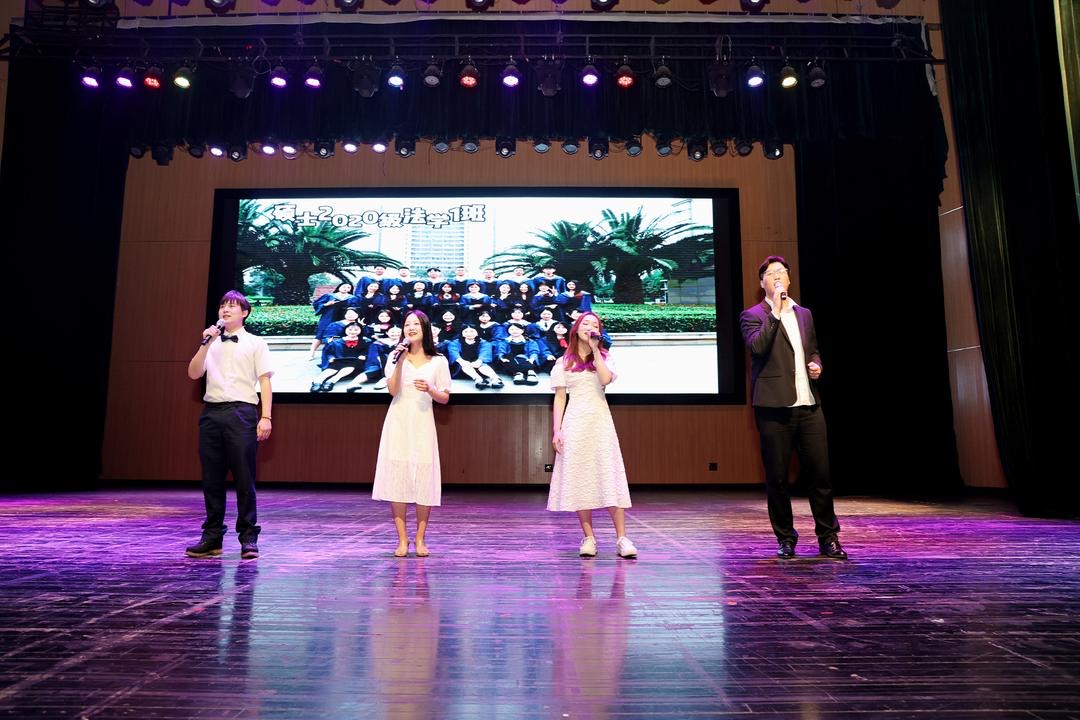随后,师生代表合唱将毕业典礼气氛推向高潮。法学系杨道现老师、政治系袁智老师与公共管理系代佳欣老师,与同学们精心准备、倾心演出,奉上一场精妙绝伦的歌曲串烧。在《风吹麦浪》的缤纷夏季,大家相聚《成都》,共同祝福每一位同学都拥有《一路生花》的美好未来。