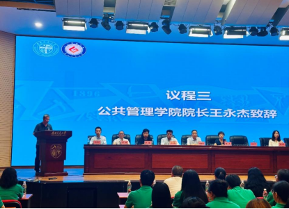 的办学历程,并对MPA新生提出期望和憧憬:首先,鼓励大家利用学校优质资源,提高学术内涵;其次,强调在职学生在学习中也要平衡好学业、工作与生活的关系;最后,对学生完成学业、展示学术成就和个人成长表示期待。此外提醒学生重视毕业论文的撰写,遵守学术规范,并展示出创新性。希望各位同学能够度过充实而美好的学习时光,顺利完成学业,为自己的人生书写精彩的篇章。