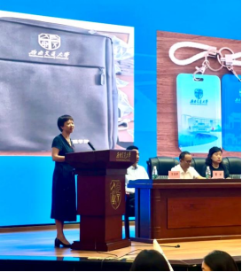 党委书记高凡向各位同学介绍新生大礼包并进行授礼仪式,礼物承载着蜜桃视频