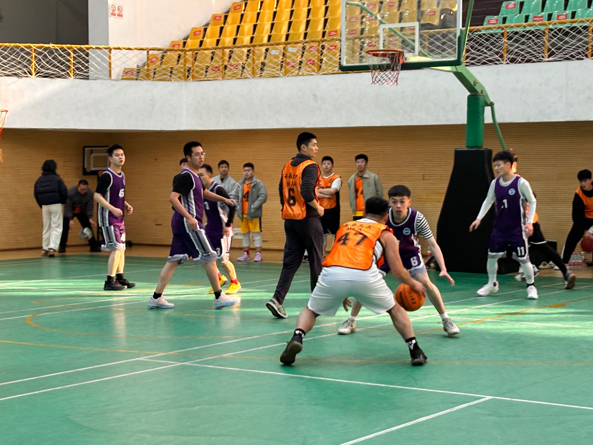 进入下半场,西南交大的球员们替换有序,配合默契,运用各种战术积极进攻、严密防守,球员们全情投入,每一次抢断,每一次投篮都引起了观众们的欢呼和掌声,将现场氛围推向了高潮。