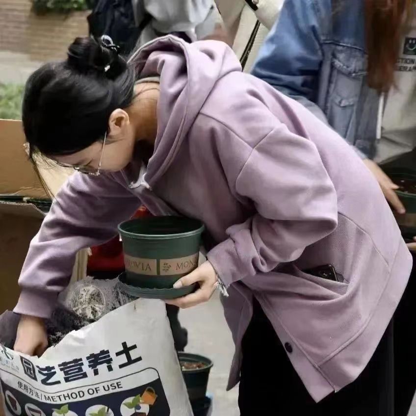 活动中。学院师生在工作人员的指引下依次完成如下流程:领取花盆,放入土壤,播撒种子,再在小标牌上写下寄语,最终获得专属盆栽。