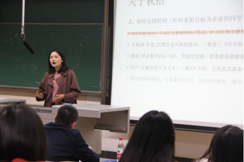 首先,董蕤学姐作为就业分享嘉宾为大家分享了她的经验。从研究生安排、生涯职业规划、提高求职竞争力再到求职建议,董蕤学姐对每个阶段都作了非常细致和真诚的分享。她鼓励大家在研一和研二阶段,专研课程学习,认真做科研项目、学生工作,提升自我技能,有选择有准备的选择实习,并且针对每个点都给出具体建议。另外在关于秋招和求职建议上重点分享了简历制作、时间安排和信息获取渠道的经验和建议。