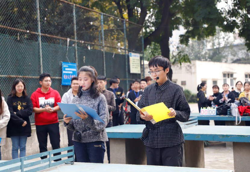 在比赛正式开始之前,公管一班的樊浩宇和法学四班的王佳雯担任主持人并为参赛选手和观赛人员讲解本次师生乒乓球比赛的注意事项和比赛流程,在短暂休整之后,本次师生乒乓球赛正式开始。