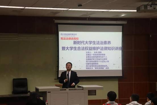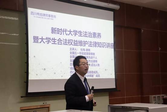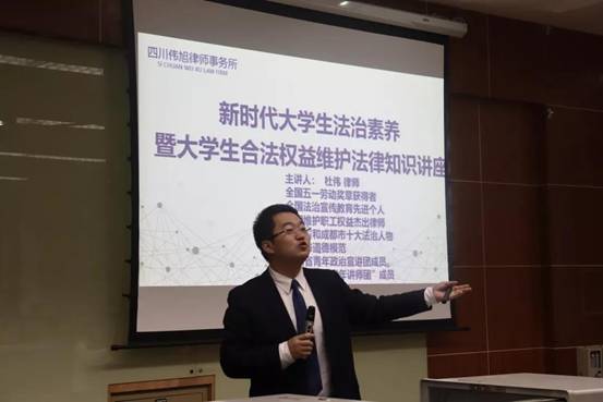 研究生会和公共管理与政法学院联合承办,主题是新时代大学生的法治素养暨大学生合法权益维护法律知识讲堂。宣讲会由四川伟旭律师事务所主任、2002级法学专业校友杜伟进行主题宣讲。公共管理与政法学院党委余小英副书记,2019级研究生辅导员莫太林老师出席本次活动,蜜桃视频