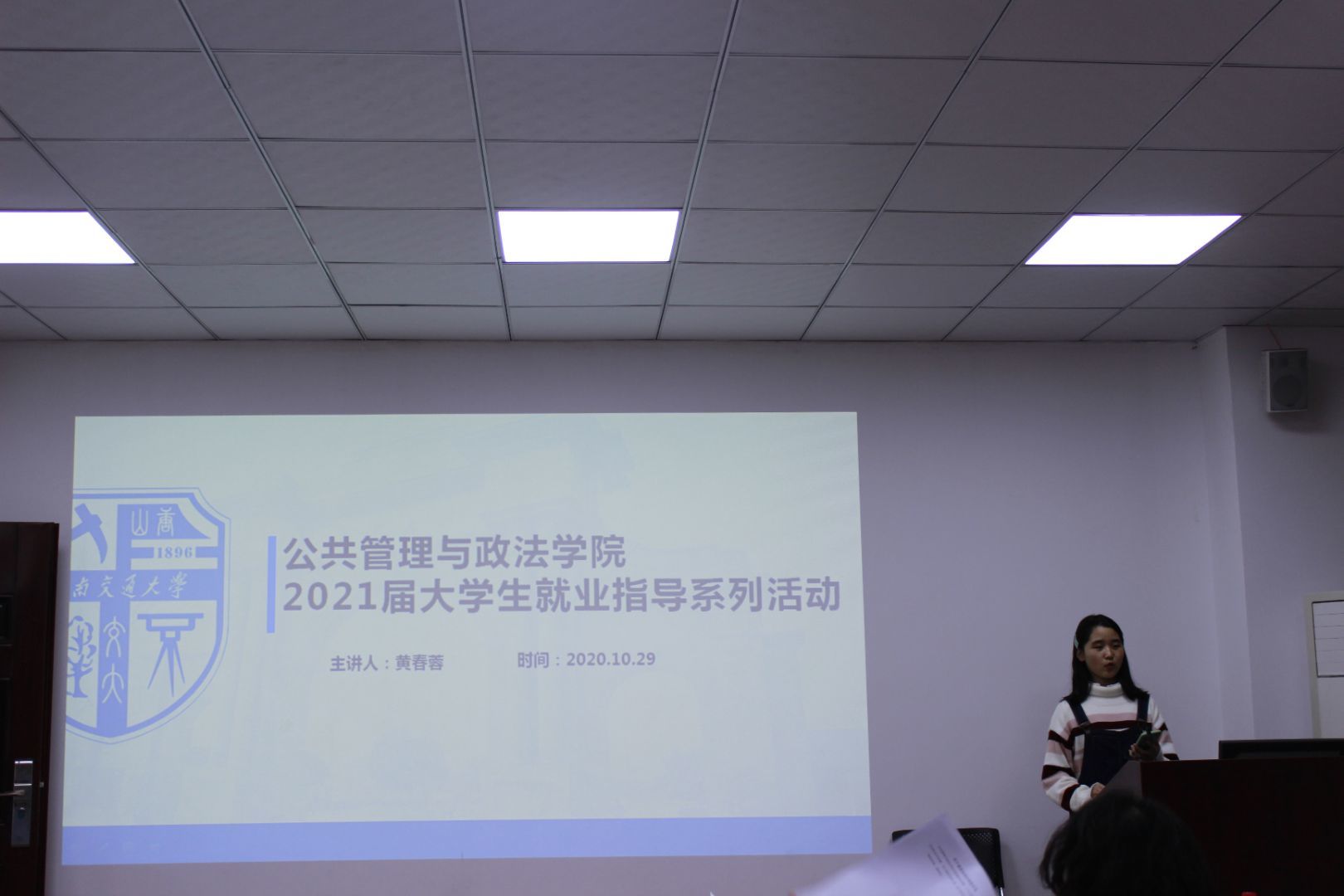 公共事业管理、政治学与行政学和法学三个专业的同学们进行指导。黄老师的这场讲座以我国大学生就业现状为背景,帮助大四同学们立足当下的就业情形,审视自身素质与能力,确立求职的正确心态,抓住机遇并拥抱未来。