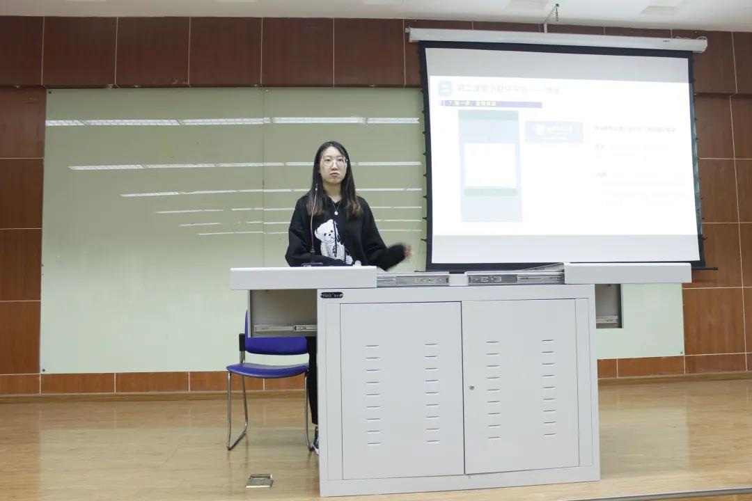 作为大学生第二课堂运营中心的现任副理事长,赵轶楠同学对第二课堂运营中心进行简短介绍,提供了三种不同的咨询渠道,并在今日的宣讲会现场开展了现场答疑环节。针对几位同学提出的“后台录入为什么这么慢”、“各版块学时上限是多少”、“缺勤后果是什么”等等问题,她进行了详细解答,回应了在场同学的问题。