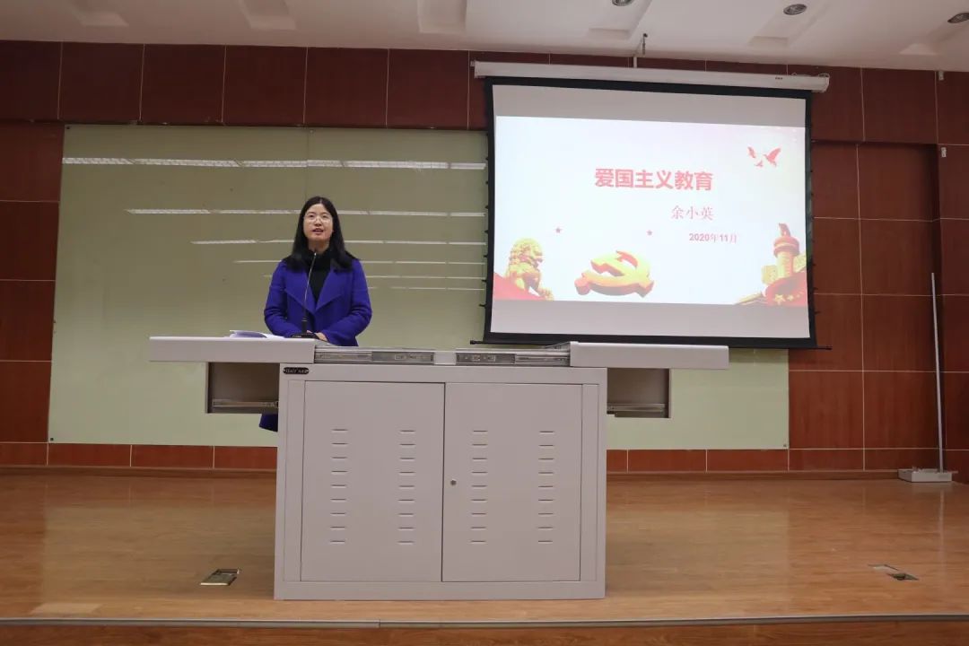 2020年11月26日下午14:00,公共管理与政法学院党委副书记余小英老师在九里校区四教4104教室开展以“爱国主义教育”为主题的党团知识入学教育。授课对象为公共管理与政法学院本科2020级学生。同时,2020级本科生辅导员许楠老师也来到现场。