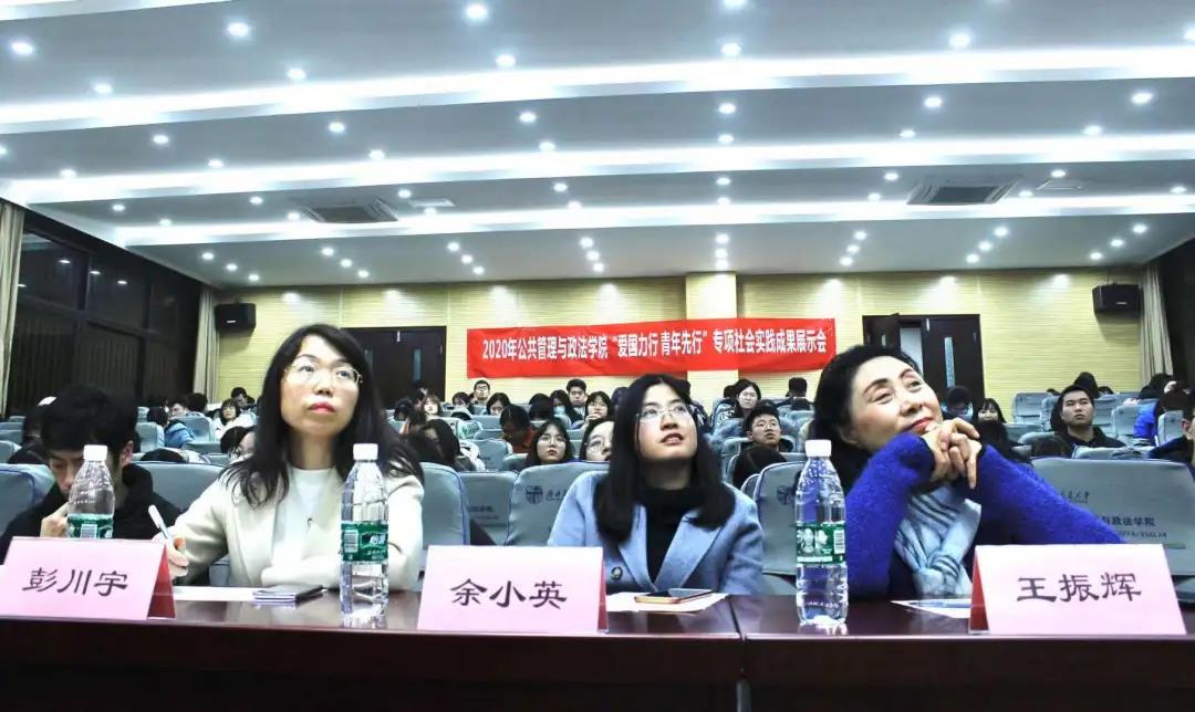 2020年11月30日19点,以“爱国力行,青年先行”为主题的2020年公共管理与政法学院专项社会实践成果展示答辩会在零号教学楼0231会议室拉开序幕。公共管理与政法学院党委副书记余小英老师,院长助理、政治学与行政学系副主任彭川宇教授,公共管理系王振辉教授,法学系杜鹃老师,研究生辅导员莫太林老师以及2019级本科生辅导员石佩锦老师,作为嘉宾评委莅临现场,为活动的开展提供指导和帮助,部分2020级新生来到现场观看本次答辩会。