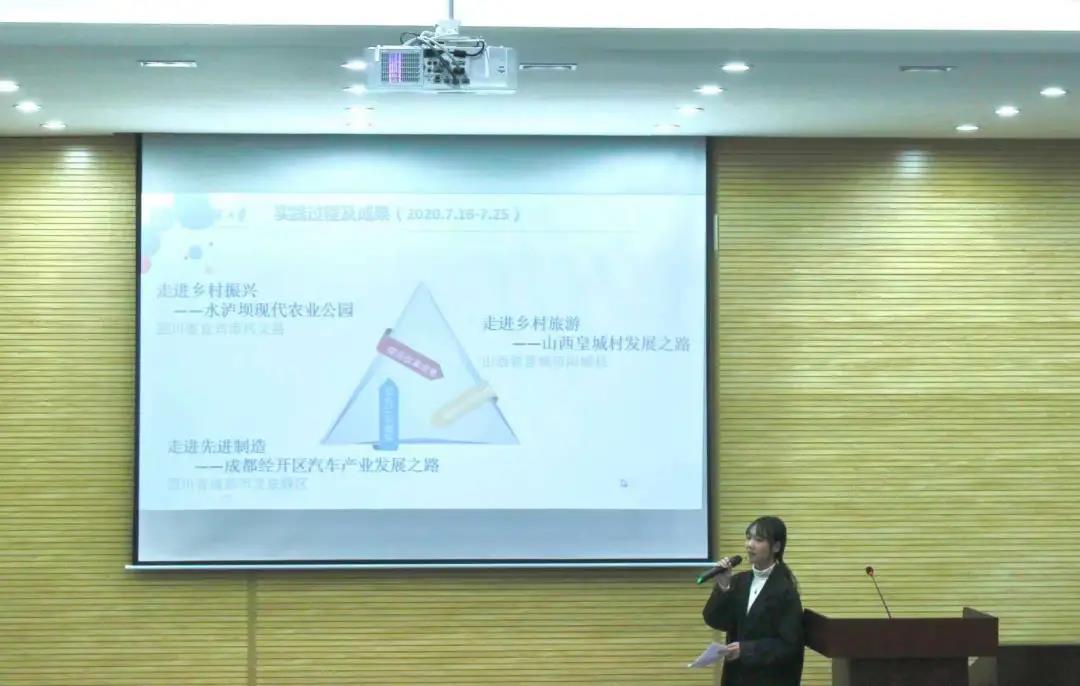 答辩会中,各参赛同学通过视频、调查报告、图片和论文的形式一一展示社会实践的成果,在声情并茂的讲解下带领现场师生感悟了红色精神,领略先辈风采;和同学们分享祖国各地人民生活改善的喜悦,感受祖国的发展。答辩结束,学院党委副书记余小英老师上台总结致辞。她对同学们积极的参与给予了充分的肯定,对各组参赛队员进行了高度评价。同时她也希望同学敢于担当,坚定信念,怀揣爱国热情传承爱国奉献精神,为实现伟大中国梦不懈奋斗。