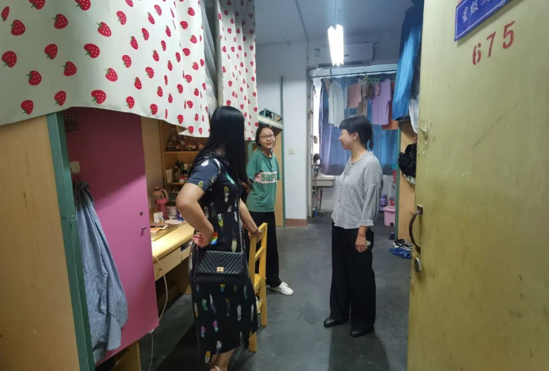 每到一间宿舍,高书记都亲切而热情地同毕业生们交谈,询问同学们的行李整理情况、班级活动的进展状况以及毕业照的拍摄进度等小细节。为了深入了解毕业生们的生活状态和离校准备,高书记将同学们都聚集在一起,聆听大家当前所面临的困难或者急需解决的问题。同学们也积极回应,先后向高书记询问了有关如何出售二手书、是否能延长住宿时间、怎样处理快递邮寄费超出预算等问题。高书记都一一提出了针对性的解决办法,而对于比较复杂的问题也表示会向学院、学校反映,并持续跟进,“得到反馈后会及时和大家联系,让大家能无忧无虑地度过在学校里的最后一段时光”。
