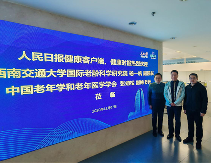 2020年12月7日,国际老龄科学研究院副院长、老龄事业与产业发展研究中心主任杨一帆教授应邀赴人民日报健康客户端、健康时报调研。人民日报健康客户端、人民日报社健康时报总编助理李晨玉在人民日报新媒体大厦热情接待。中国老年学和老年医学学会副秘书长张劲松参加交流。