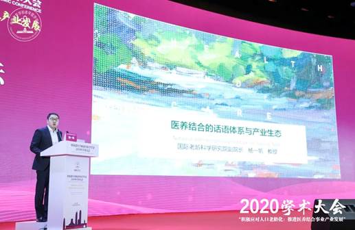 11月7日,中国老年学和老年医学学会2020年学术大会在广西壮族自治区首府南宁荔园山庄会议中心隆重举行。蜜桃视频 教授、国际老龄科学研究院副院长、老龄事业与产业发展研究中心主任杨一帆就“医养结合的话语体系与产业生态”发表主题演讲。
