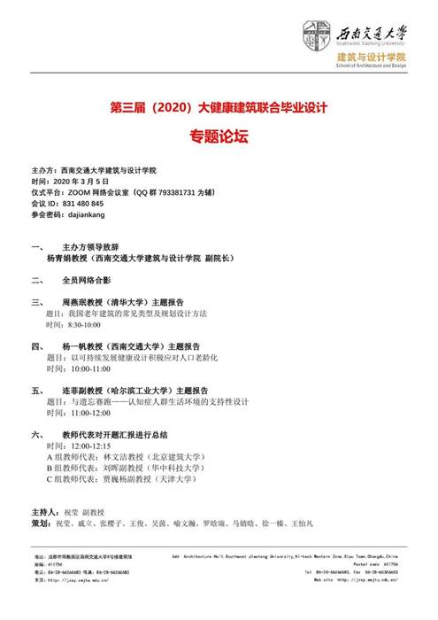 国际老龄科学研究院副院长、老龄事业与产业发展研究中心主任杨一帆教授应邀在第三届(2020)大健康建筑联合毕业设计专题论坛做主题报告,题为“以可持续发展健康设计积极应对人口老龄化”。同场发表演讲的专家还有清华大学周燕珉教授“我国老年建筑的常见类型及规划设计方法”和哈尔滨工业大学“连菲副教授“与遗忘赛跑——认知症人群生活环境的支持性设计”。